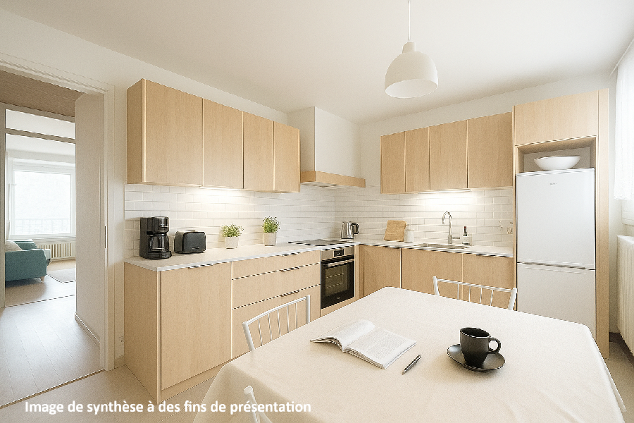 - Deux vastes chambres avec placard : 19 et 15 m²