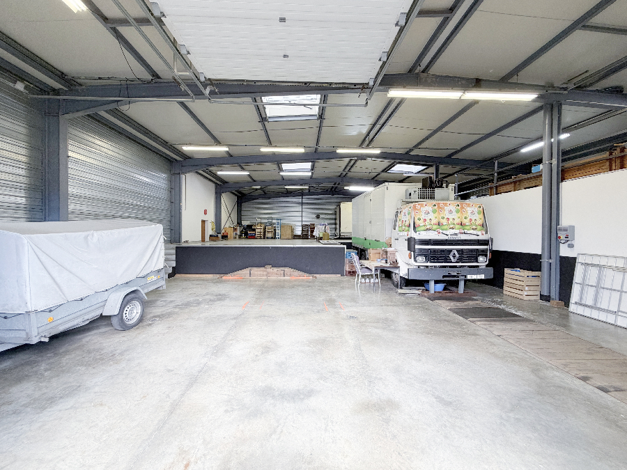 • Dépôt industriel de 300 m² : deux grandes portes motorisées et une porte manuelle (hauteur de 4 à 5 m), quai de chargement, fosse d’une dizaine de mètres.