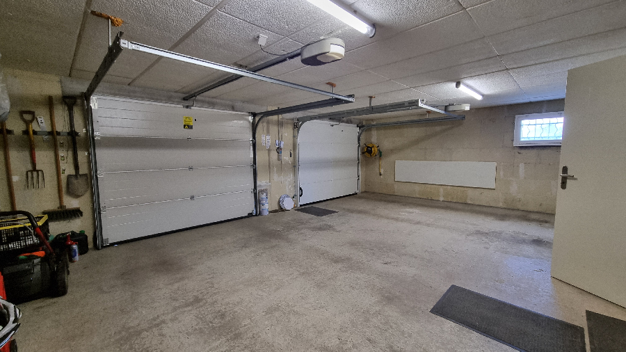 A cela s’ajoute un double garage disposant de deux à trois places et de deux caves semi aménagées en sous-sol.