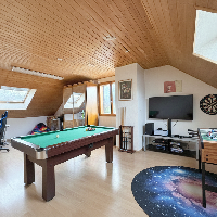 Découvrons l'étage : Les possibilités d'aménagement sont infinies dans cette pièce aux volumes généreux et baignée de lumière grâce aux vélux : le fameux coin détente/lecture/pouvant faire office de second salon, mais permettrait d'accueillir également, selon vos envies, une batterie (qui est le cas aujourd'hui), un billard, un baby-foot?. Mais aussi un bureau de travailles, une voire deux chambres supplémentaires ! Un volume rare, idéal pour créer un véritable univers familial ou offrir aux enfants un espace de jeux dédié, nous permettant à nous parents de souffler un peu !