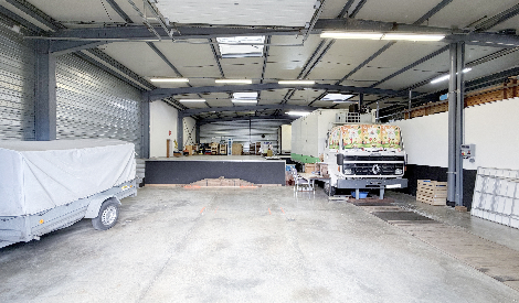 • Dépôt industriel de 300 m² : deux grandes portes motorisées et une porte manuelle (hauteur de 4 à 5 m), quai de chargement, fosse d’une dizaine de mètres.